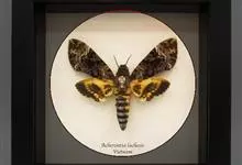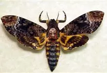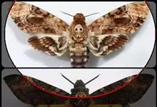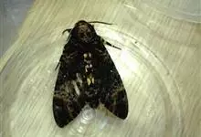 鬼脸天蛾,是鳞翅目天蛾科面形天蛾属动物。成虫翅展100~125毫米,体黑褐色;胸背有骷髅形斑纹;卵圆球形,直径约2毫米,淡黄绿色,表面光滑;老熟幼虫体长70~90毫米,蛹体长约56毫米;前翅为褐色,…全部>>