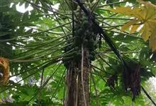 番木瓜,番木瓜科番木瓜属的常绿软木质小乔木,高达10米,具有乳汁;茎不分枝或有时于损伤处分枝;叶大且聚生于茎顶,近似盾形,叶柄中空;花单性或两性,有些品种雄株偶尔生两性花或雌花,…全部>>