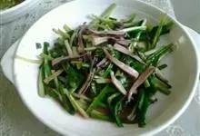 韭菜炒香干是一道菜品,制作原料主要有韭菜、香干等。鲜嫩可口,有点小小的微辣,加入切成段的韭菜,翻匀,…全部>>