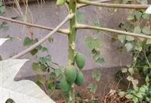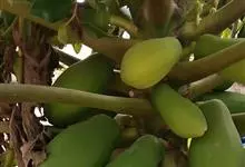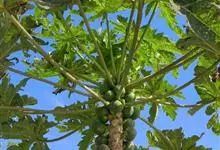 番木瓜,番木瓜科番木瓜属的常绿软木质小乔木,高达10米,具有乳汁;茎不分枝或有时于损伤处分枝;叶大且聚生于茎顶,近似盾形,叶柄中空;花单性或两性,有些品种雄株偶尔生两性花或雌花,…全部>>