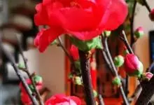 贴梗海棠 Nakai)是蔷薇科、木瓜海棠属植物。落叶灌木,高达2米,枝条直立开展,有刺。叶片卵形至椭圆形,稀长椭圆形,长3-9厘米,宽1.5-5厘米。花先叶开放,3-5朵簇生于二年生老枝上。…全部>>