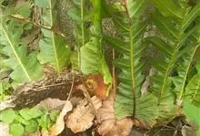 崖姜 Ching)是水龙骨科、崖姜蕨属植物。根状茎横卧,粗大,肉质,密被蓬松的长鳞片,有被毛茸的线状根混生于鳞片间,弯曲的根状茎盘结成为大块的垫状物,由此生出一丛无柄而略开展的叶,…全部>>
