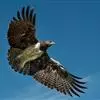 苍鹰是中小型猛禽。体长可达60厘米,翼展约1.3米。头顶、枕和头侧黑褐色,枕部有白羽尖,眉纹白杂黑纹;背部棕黑色;胸以下密布灰褐和白相间横纹;尾灰褐,有4条宽阔黑色横斑,尾方形。飞行时,双翅宽阔,…全部>>