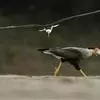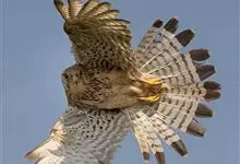 红隼:是隼科、隼属的小型猛禽之一。体重173-335克,体长305-360毫米。翅狭长而尖,尾亦较长,外形和共同爪隼非常相似。雄鸟头蓝灰色,背和翅上覆羽砖红色,具三角形黑斑;腰、尾上覆羽和尾羽蓝灰色,…全部>>