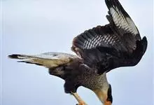 凤头卡拉鹰亦称凤头巨隼,共有三种。是一些有黑色头冠的老鹰,喙较短,先端两侧有齿突,基部不被蜡膜或须状羽;鼻孔圆形,自鼻孔向内可见一柱状骨棍;翅长而狭尖,扇翅节奏快;尾较细长。飞行快速,…全部>>