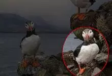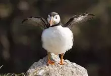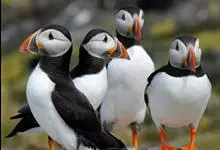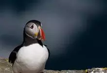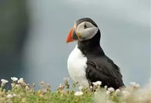 角嘴海雀,是海雀科、角嘴海雀属的中型海鸟,体长32-41厘米,嘴短而粗呈圆锥状、橙色。夏羽上嘴基部有一个三角形的突出物,形状如角。头两侧各有两条由白色丝状饰羽组成的纵带,分别位于眼上和眼下后方的头侧…全部>>