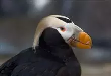 角嘴海雀,是海雀科、角嘴海雀属的中型海鸟,体长32-41厘米,嘴短而粗呈圆锥状、橙色。夏羽上嘴基部有一个三角形的突出物,形状如角。头两侧各有两条由白色丝状饰羽组成的纵带,分别位于眼上和眼下后方的头侧…全部>>