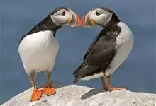 凤头海雀:是鸟纲、鸻形目、海雀科的一种海鸟。体重211-322克,体长18-20厘米。前趾间有蹼膜,后趾缺如。翅窄而短小,尾短。是海鸟中体型相对较小的鸟类。雌雄羽色相似。身体羽毛上体深灰色,…全部>>