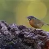金眼鹛雀是莺科、鹛雀属小型鸟类。体长16-20厘米。头顶和上体棕褐色,两翅表面肉桂红色,尾褐色具明暗相间横斑。眼周金黄色,眼先、眼上、眼下、颊以及颏、喉和上胸概为白色,其余下体茶黄色,脚橙黄色。…全部>>