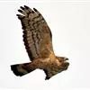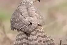 褐耳鹰的体形比苍鹰要小得多,为小型猛禽,体长为31-44厘米,体重217-325克。上体灰色,下体具赤褐色横斑。第6枚初级飞羽外羽片无缺刻,次外侧的4对尾羽具5道黑褐色横斑。眼先具白色短羽。…全部>>