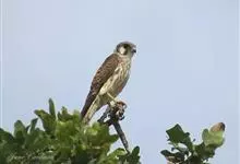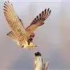 红隼:是隼科、隼属的小型猛禽之一。体重173-335克,体长305-360毫米。翅狭长而尖,尾亦较长,外形和共同爪隼非常相似。雄鸟头蓝灰色,背和翅上覆羽砖红色,具三角形黑斑;腰、尾上覆羽和尾羽蓝灰色,…全部>>