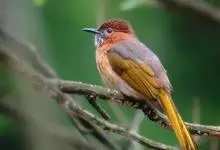 绿翅短脚鹎是鹎科、短脚鹎属的鸟类。共有9个亚种。中型鸟类,体长20-26厘米。头顶羽毛形尖、栗褐色具白色羽轴纹,在暗色的头部极为醒目。上体灰褐缀橄榄绿色,两翅和尾亮橄榄绿色。耳和颈侧红棕色,颏、喉灰色,…全部>>