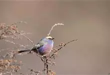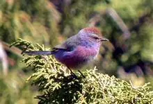 凤头雀莺:小型鸟类。体长9-10厘米,雄鸟呈毛茸茸的紫色和绛紫色,顶冠淡紫灰色,额及凤头白色,尾全蓝。雌鸟喉及上胸白,至臀部渐变成淡紫色,耳羽灰,…全部>>
