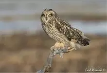 短耳鸮又名小耳木兔、田猫王、夜猫子等,是鸮形目鸱鸮科耳鸮属中小型猛禽动物。成鸟面盘显著,眼周黑色;眼先及内侧眉纹灰白色,面盘余部棕黄色杂以黑色细羽干纹;耳簇羽短小而几乎不外露,…全部>>