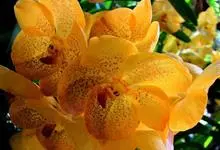 湿唇兰 Pfitz.):茎粗壮,长被宿存的叶鞘所包,上部具3-5枚叶。叶长圆形或倒卵状长圆形。花序1-6个,长达35厘米;疏生5-8朵花;花大,稍肉质,萼片和花瓣黄色带暗紫色斑点;萼片近相似,…全部>>