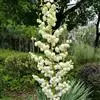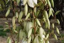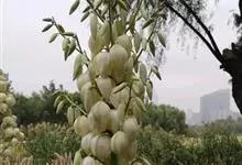 丝兰是天门冬科丝兰属植物。茎短或无茎;圆锥花序烛台状,花朵杯形,下垂,白色;叶基部呈剑形放射状,被白粉,革质;花期8—10月。丝兰原产于北美,在中国长江流域一带和华北地区均有栽培,长江以南地区也有分布。…全部>>