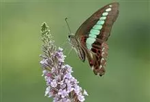 青带凤蝶Graphium sarpedon ,又名青凤蝶,是最普遍的中型凤蝶,飞行速度很快。青带凤蝶的翅膀中央有许多浅蓝色的斑点,很整齐地排列成一条直线。这些斑点由上而下逐渐变大,就像一条青色的带子。全部>>