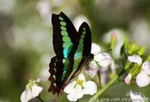 青带凤蝶Graphium sarpedon ,又名青凤蝶,是最普遍的中型凤蝶,飞行速度很快。青带凤蝶的翅膀中央有许多浅蓝色的斑点,很整齐地排列成一条直线。这些斑点由上而下逐渐变大,就像一条青色的带子。全部>>