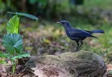 紫啸鸫是雀形目鹟科啸鸫属鸟类,又称黑雀儿,山鸣鸡、乌精。成鸟眼先及颏绒黑色;前额、头顶至背及肩羽和颈侧呈深紫蓝色,羽端具较密集的亮蓝色点斑;腰至尾上覆羽的深紫蓝色较暗而杂黑褐色,…全部>>
