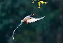 红嘴蓝鹊,别名山鹊、长尾鹊,是鸦科蓝鹊属的一种观赏性较强的大型鸣禽。该物种为体长54~65cm,头、颈、喉和胸黑色,头顶至后颈有一块白色至淡蓝白色或紫灰色块斑,其余上体紫蓝灰色或淡蓝灰褐色。尾长呈凸状,…全部>>