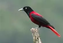 朱鹂:中等鸟类,体长23-28厘米。雄鸟绛紫红色,头、上胸及翼黑色。雌鸟上背及背部深灰色,尾覆羽及尾绛紫红色,腹部及下胸白而密布黑色纵纹。与鹊色鹂幼鸟的区别在上背灰色较深,下体白色较少且纵纹较粗。…全部>>