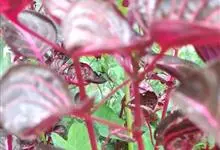 血苋是苋科血苋属的多年生草本植物。高1-2米;茎粗壮,常带红色,有分枝,有纵棱及沟;叶片宽卵形至近圆形,两面有贴生毛,紫红色;雌雄异株,花成顶生及腋生,圆锥花序,由多数穗状花序形成,苞片及小苞片呈卵形,…全部>>