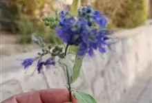 蒙古莸:为唇形科莸属落叶小灌木。常自基部即分枝,嫩枝紫褐色,圆柱形,有毛,老枝毛渐脱落。叶片厚纸质,线状披针形或线状长圆形,背面密生灰白色绒毛。聚伞花序腋生,无苞片和小苞片,花萼钟状,花冠蓝紫色。…全部>>