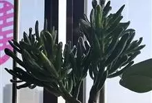 筒叶花月,是景天科青锁龙属的多年生草本植物。植株多分株,灌木状,茎较粗壮,圆柱形,表皮灰褐色;叶片肉质,互生,呈圆筒状,簇生于茎或分枝顶端,叶端呈斜截形,截面为椭圆形;花呈星状,淡白色;花期秋季。…全部>>