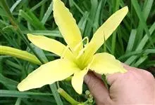 黄花菜 别名金针菜、柠檬萱草等,是阿福花科萱草属的多年生宿根性草本植物。根近肉质,中下部常有纺锤状膨大;叶7~20枚,长50~130cm,宽6~25mm;花葶长短不一,花梗较短,花多朵,…全部>>