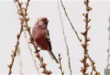 藏朱雀:全长约17-18厘米。雄鸟头部深红色具光辉,喉部暗红色具白色点斑;背部灰白色,各羽具玫瑰红色羽端,形成许多斑纹;腰部淡玫瑰红色;翅暗褐色,沾灰白,羽端沾玫瑰红或灰白色;尾暗棕色,端缘玫瑰红色…全部>>