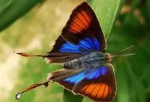 优红蛱蝶:翼展4.5-12厘米。是一种美丽的蝴蝶。色彩鲜艳,花纹相当复杂。前足相当退化,短小无爪。前翅R脉5条,常共柄。卵呈半圆球形。幼虫头上常有突起,体节上有枝刺,腹足趾钩1至3序中列式。蛹为垂蛹。全部>>