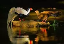 白鹇,是鸡形目雉科鹇属的一种留鸟。雄鸟上体白色并具黑色纹,下体黑色,头顶具黑色长羽冠,尾白而长;雌鸟体型较小,以橄榄褐色为主,下体具白色或皮黄色细纹;虹膜褐色,眼周具红色裸皮,喙黄色,脚鲜红色。…全部>>