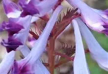 紫堇,罂粟科紫堇属一年生草本植物,高50厘米。主根细长;茎分枝,花枝常与叶对生;基生叶具长柄,叶倒卵圆形;总状花序花冠粉红或紫红色,外花瓣较宽;蒴果线形下垂;种子密被环状小凹点;花期3-4月,…全部>>