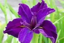 玉蝉花是鸢尾科鸢尾属的多年生草本植物,根状茎粗壮,斜伸;叶线形,中脉明显,长可达80厘米,宽约1厘米;花深紫色,直径约10厘米,花被管漏斗形,外花被裂片倒卵形,爪部细长,中央下陷呈沟状,…全部>>
