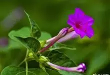 即紫茉莉,英文名:Four-o'clock,Marvel of Peru,为紫茉莉科、紫茉莉属多年生草本植物,一年生栽培。株高50~80cm。根粗壮,茎多分枝而散生。叶对生,卵形或心脏形。花数朵簇生…全部>>
