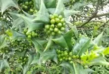 构骨叶冬青学名枸骨,又名猫儿刺、老虎刺、八角刺、鸟不宿、构骨、狗骨刺、猫儿香和老鼠树。常绿灌木或小乔木,高1-3米,二年枝褐色,三年生枝灰白色,叶片厚革质,花淡黄色,果球形,直径8-10毫米,成熟时…全部>>