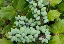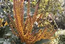 十大功劳 Fedde),小檗科十大功劳属常绿灌木植物。叶子较大且较多,呈椭圆形,绿色,表面光滑无毛,叶柄较长;花朵较小,呈多边形,黄色,花瓣对称分布,表面有绒毛;果实呈圆形,褐色,…全部>>