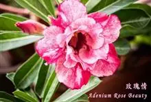 沙漠玫瑰 Roem. & Schult.),别名天宝花、阿拉伯沙漠玫瑰、索马里沙漠玫瑰等,为夹竹桃科沙漠玫瑰属的一种多肉灌木或小乔木植物。其树干肿胀,茎干光滑,白绿色或灰白色,…全部>>