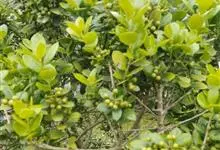 构骨叶冬青学名枸骨,又名猫儿刺、老虎刺、八角刺、鸟不宿、构骨、狗骨刺、猫儿香和老鼠树。常绿灌木或小乔木,高1-3米,二年枝褐色,三年生枝灰白色,叶片厚革质,花淡黄色,果球形,直径8-10毫米,成熟时…全部>>