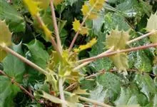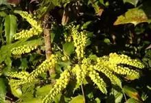 阔叶十大功劳 Carr. )是小檗科,十大功劳属常绿灌木或小乔木,高可达2米。叶长圆形,上面深绿色,叶脉显著,背面淡黄绿色,网脉隆起,小叶无柄,基部一对小叶倒卵状长圆形,总状花序簇生,…全部>>