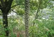刺楸 Koidz.),五加科刺楸属落叶乔木,高30米。树干通直;树皮纵裂灰黑褐色;叶掌状分裂长圆状卵形;伞形花序,花较小白色或淡黄绿色;果蓝黑色;花期7-8月,果期9-11月。变种有深裂叶刺楸,…全部>>