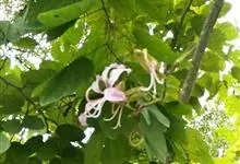 楸紫葳科小乔木,高8-12米。叶三角状卵形或卵状长圆形,宽达8厘米,顶端长渐尖,基部截形,阔楔形或心形,叶面深绿色,叶背无毛;叶柄长2-8厘米。顶生伞房状总状花序,有花2-12朵。花萼蕾时圆球形,…全部>>