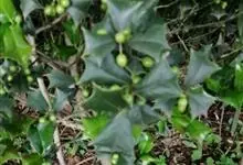 构骨叶冬青学名枸骨,又名猫儿刺、老虎刺、八角刺、鸟不宿、构骨、狗骨刺、猫儿香和老鼠树。常绿灌木或小乔木,高1-3米,二年枝褐色,三年生枝灰白色,叶片厚革质,花淡黄色,果球形,直径8-10毫米,成熟时…全部>>