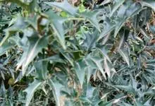 构骨叶冬青学名枸骨,又名猫儿刺、老虎刺、八角刺、鸟不宿、构骨、狗骨刺、猫儿香和老鼠树。常绿灌木或小乔木,高1-3米,二年枝褐色,三年生枝灰白色,叶片厚革质,花淡黄色,果球形,直径8-10毫米,成熟时…全部>>