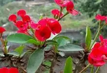 铁海棠为大戟科大戟属蔓生灌木植物;茎多分枝,具纵棱,呈旋转状;叶互生,通常集中于嫩枝上;每个花序基部边缘具微小的红色尖头;苞叶先端圆且具小尖头,无柄,上面鲜红色,下面淡红色;苞片丝状;子房光滑无毛,…全部>>
