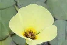 水金英 Buchenau)是黄花蔺科水金英属植物,多年生浮叶草本。株高1-5厘米。茎圆柱形,直径约5毫米。叶具长柄,圆形至阔卵圆形。伞形花序;小花具长柄,罂粟状,直径6厘米,淡黄色艳,…全部>>