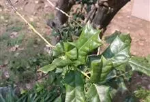 构骨叶冬青学名枸骨,又名猫儿刺、老虎刺、八角刺、鸟不宿、构骨、狗骨刺、猫儿香和老鼠树。常绿灌木或小乔木,高1-3米,二年枝褐色,三年生枝灰白色,叶片厚革质,花淡黄色,果球形,直径8-10毫米,成熟时…全部>>