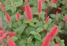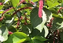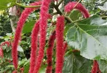 红穗铁苋菜:为大戟科、铁苋菜属植物,灌木,高0.5-3米。嫩枝被灰色短绒毛,毛逐渐脱落,小枝无毛。 花序色泽鲜艳,葇荑花序下垂,如狐狸尾状,雌花近卵形,长约0.8毫米,顶端急尖,具短毛;子房近球形,…全部>>