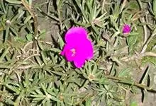 大花马齿苋:一年生草本,高10-30厘米。茎平卧或斜升,紫红色,多分枝,节上丛生毛。叶密集枝端,较下的叶不规则互生,叶片细圆柱形,无毛。花单生或数朵簇生枝端,直径2.5-4厘米,…全部>>