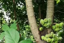 大果榕是桑科榕属的小乔木,株高可达10米;幼枝被柔毛;叶互生,宽卵状心形或近圆形;雄花无梗、匙形、花丝长,雌花生于雌株榕果内,子房白色;榕果簇生于树干基部或老茎短枝上、扁球形或陀螺形,…全部>>